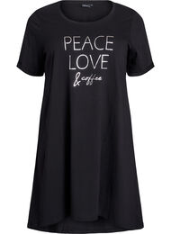 Komfortabel nattkjole i 100 % økologisk bomull med enkelt trykk. Nattkjolen har korte ermer med opprulling, rund hals og en løs og behagelig passform med A-formet design.