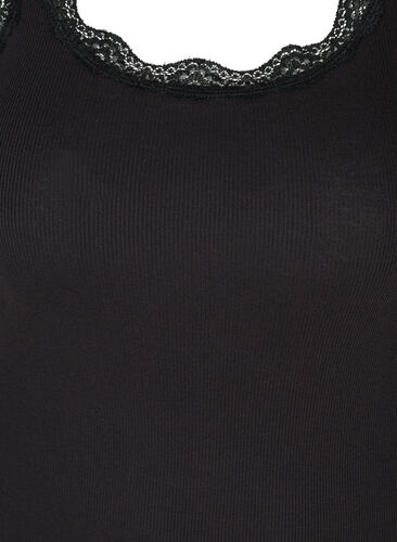 Flott og feminin basistopp i en fin ribbkvalitet. Toppen har en søt blondekant ved den runde halsen og ved ermene.